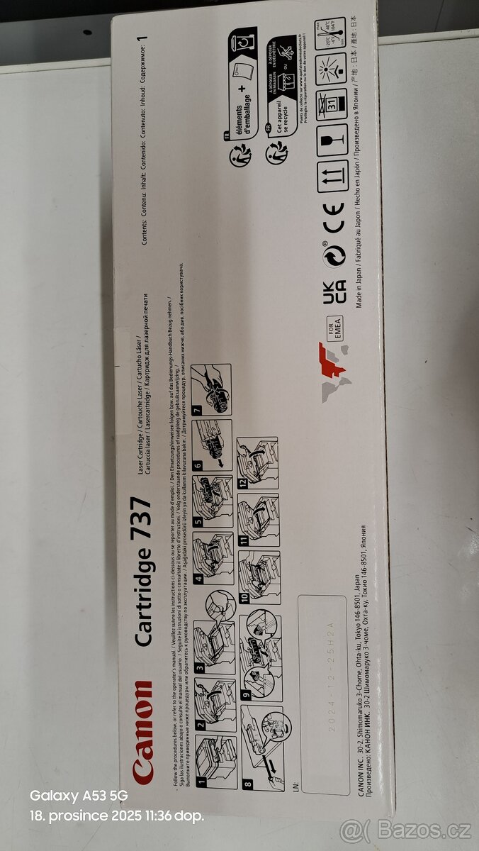 Prodám novou, originál zabalenou cartridge CANON 737. Pouze osobní předání v Plzni.