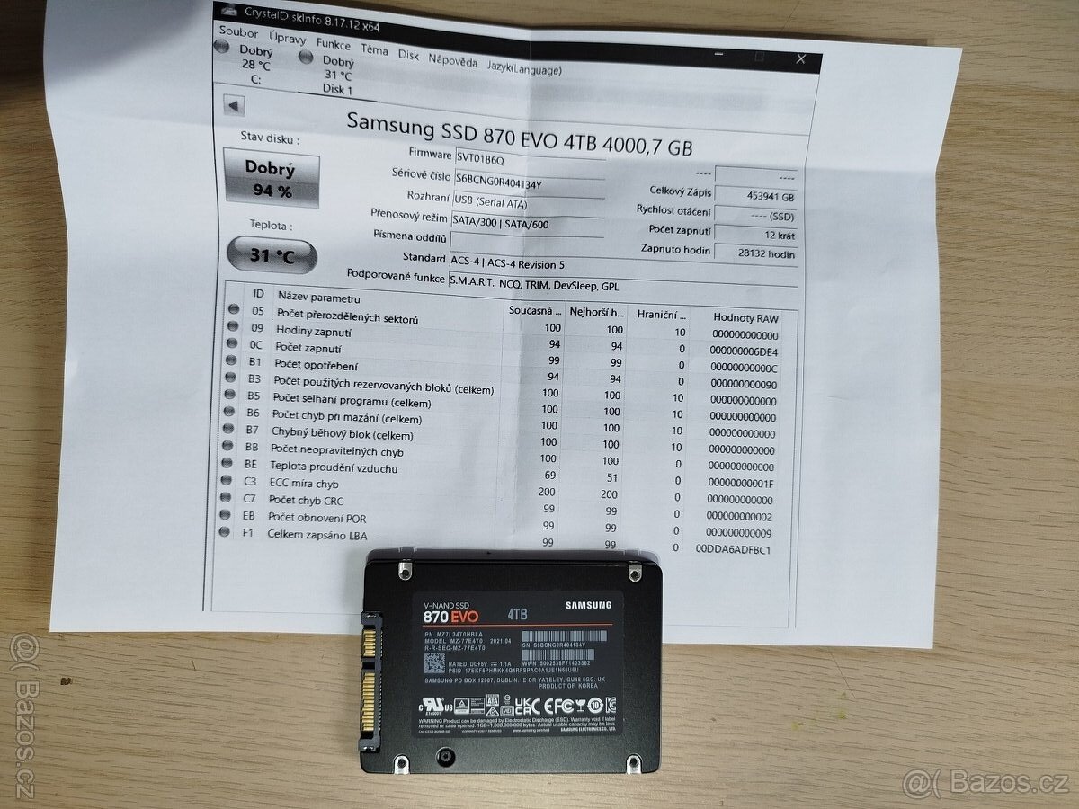 2x SSD SAMSUNG 870 EVO 4 TB (3500 kč/kus)(cena na alze 9300 kč viz.foto)