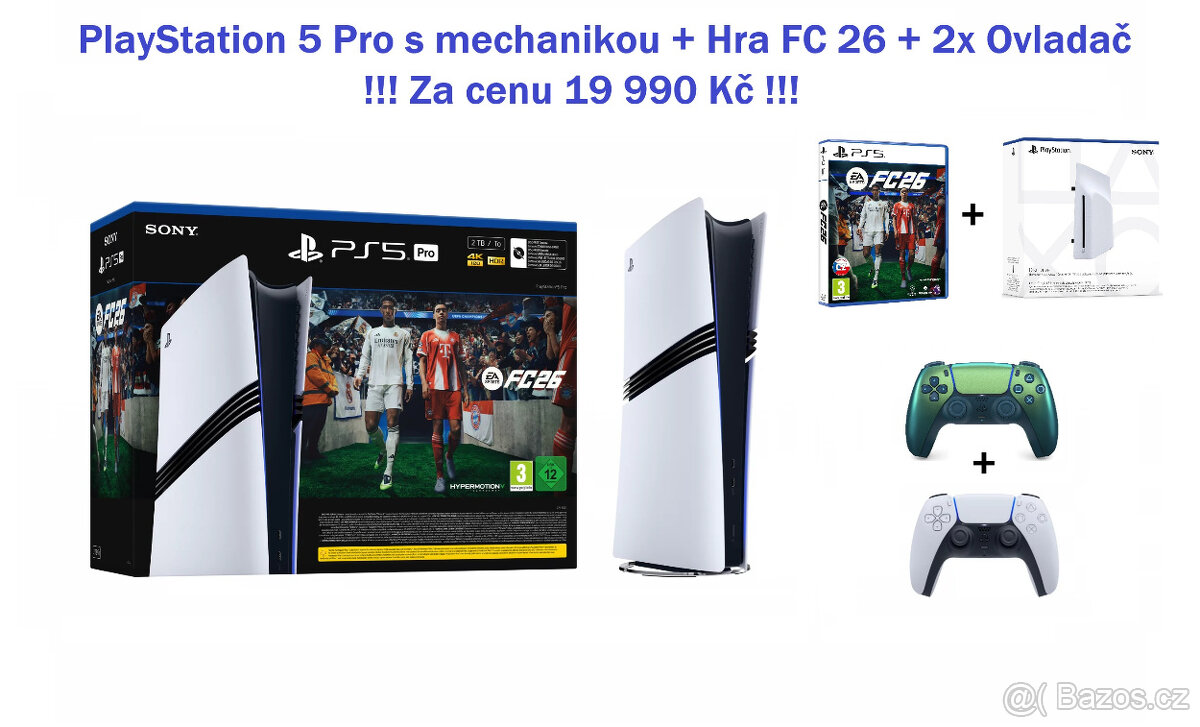 PS5 Pro s mechanikou+FC 26 + 2xOvladač Záruka 21 Měsíců Alza