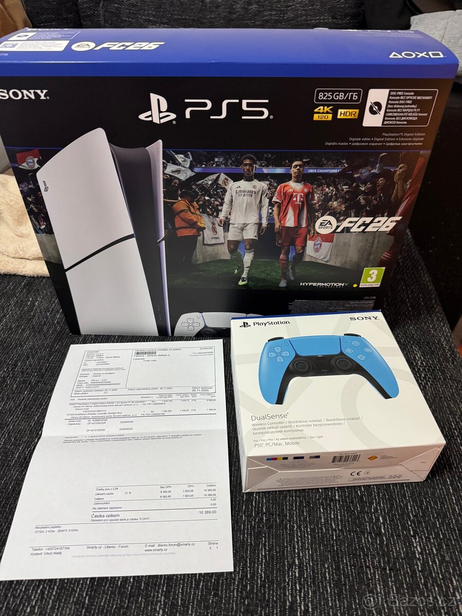 Prodám herní konzoli Sony PlayStation 5 Digital slim Edition 825 gb. Plus 2 ovladače. Konzole 23 měsíců v záruce u Smarty. Krabice, kompletní příslušenství.