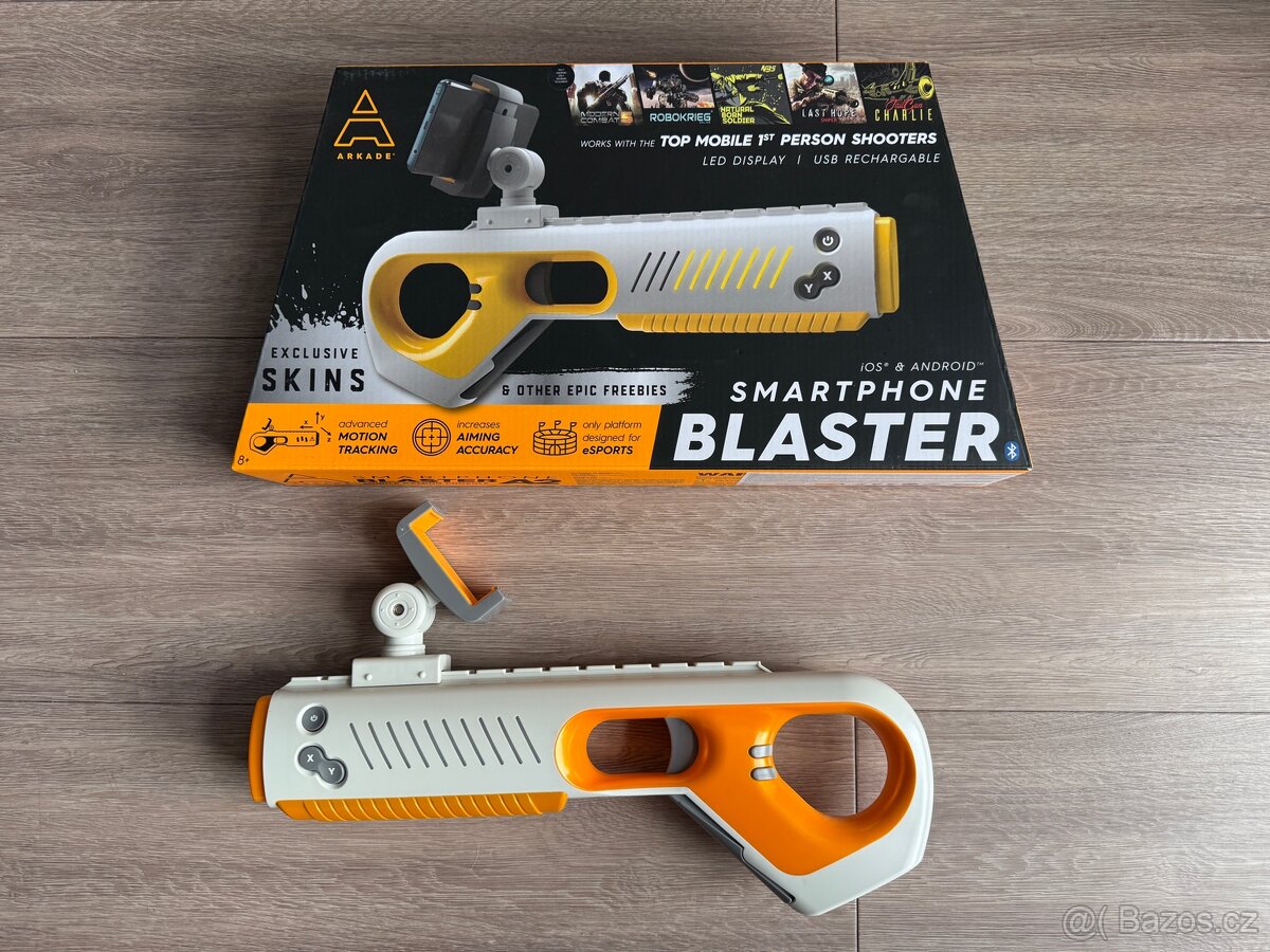 ARKADE Blaster je pokročilý ovladač sledování pohybu Bluetooth® kompatibilní s mnoha špičkovými mobilními střílečkami pro jednu osobu