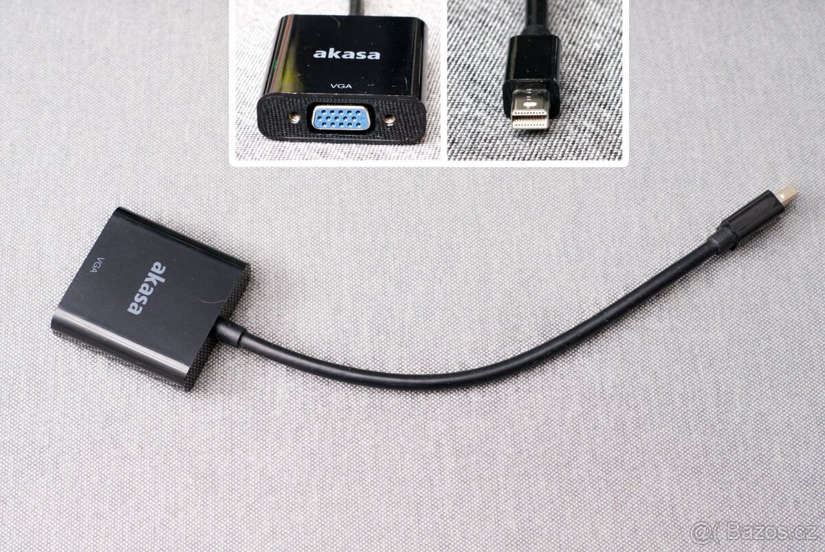 Prodám kabelovou redukci: AKASA redukce mini DP (DisplayPort) na VGA v délce 20cm.