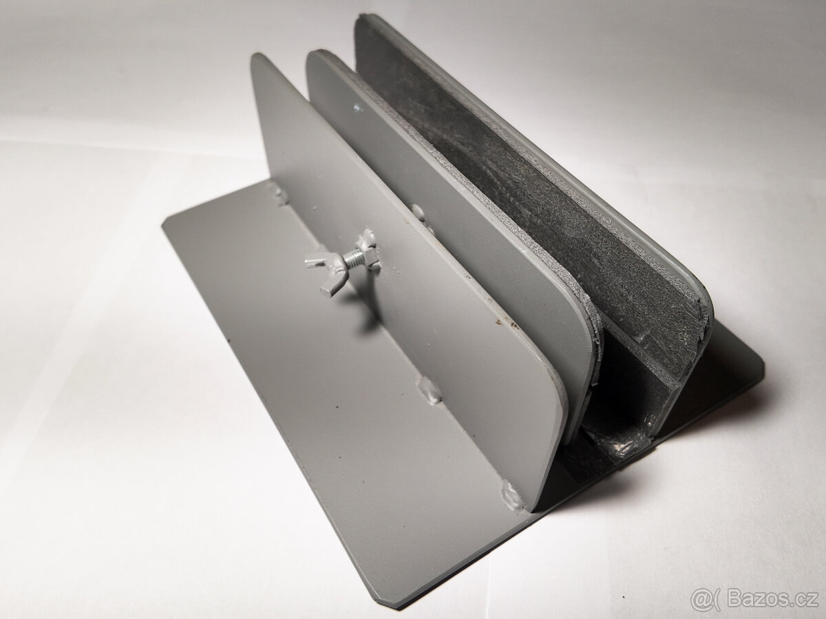 Prodám originální ocelový univerzální stojan na notebook. Stojan je vyroben z 3mm ocelového plechu a je velmi bytelný (vysoká hmotnost). Notebook je ve stojanu chráněn proti poškrábání 3mm pěnovými pásky. Stojan je nastříkán matně šedou barvou.