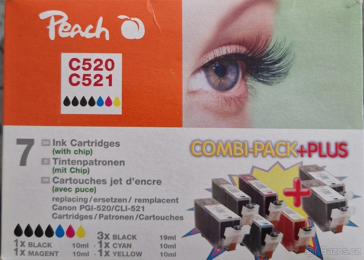 NOVÉ!PEACH Canon C 520 + C521 s čipem,Combi-Pack,520/52 renomovaný Švýcarský výrobce s dlouholetou tradicí, jeden z největších ve střední Evropě. 5+2 ks navíc!