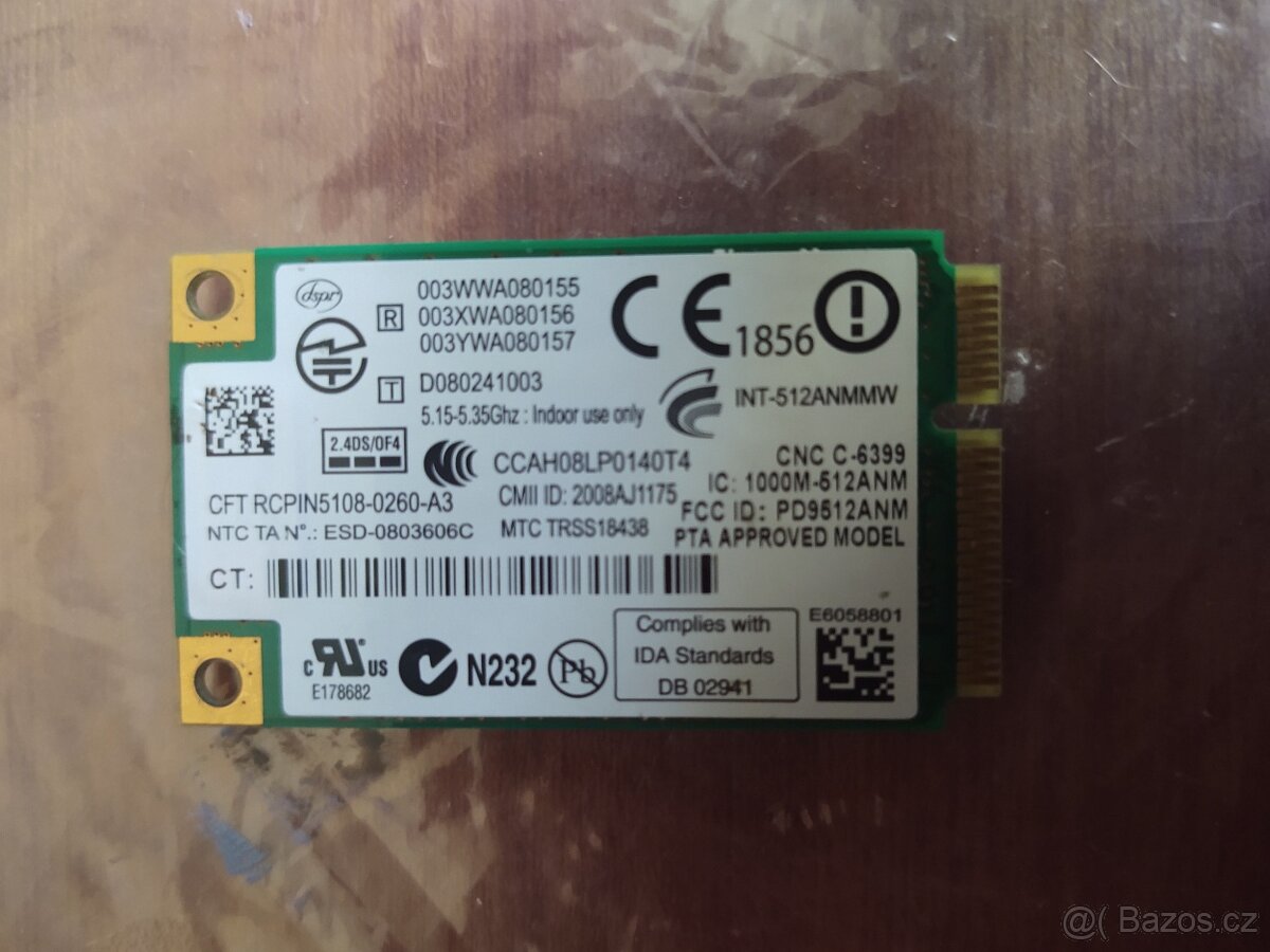 Prodám WIFI modul, parametry na obrázku, Lenovo, Acer, Asus, HP, Dell, Fujitsu, zasílám po uhrazení na účet, dopis 45 Kč, balíkovna 75 Kč, zásilkovna 89 Kč, pište SMS, e-mail, telefon když nezvednu pište SMS, platí do smazání