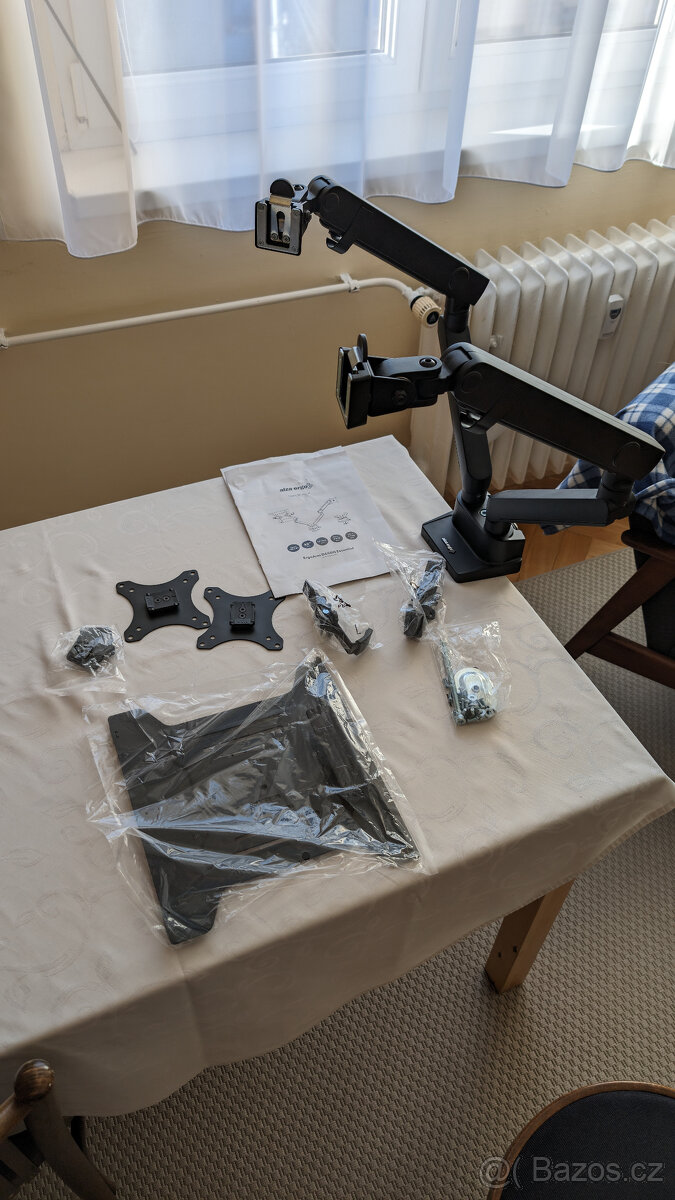 Prodám držák na monitor na hranu stolu, 17" až 32", max. zatížení 12,5 kg, náklon -90° až 90°, natočení 180°, rotace 180°, VESA 75×75 a 100×100 mm, systém pro uspořádání kabelů, montážní sada, vhodný pro prohnutý monitor, podložka pod 15,6" notebook nebo tablet. Buď je možné použít pro 2 monitory, nebo 1 monitor + notebook. Držák je do 22.11.2024 v záruce. Místo předání ideálně v okolí Prahy, případně je možné v okolí Studené na Vysočině.