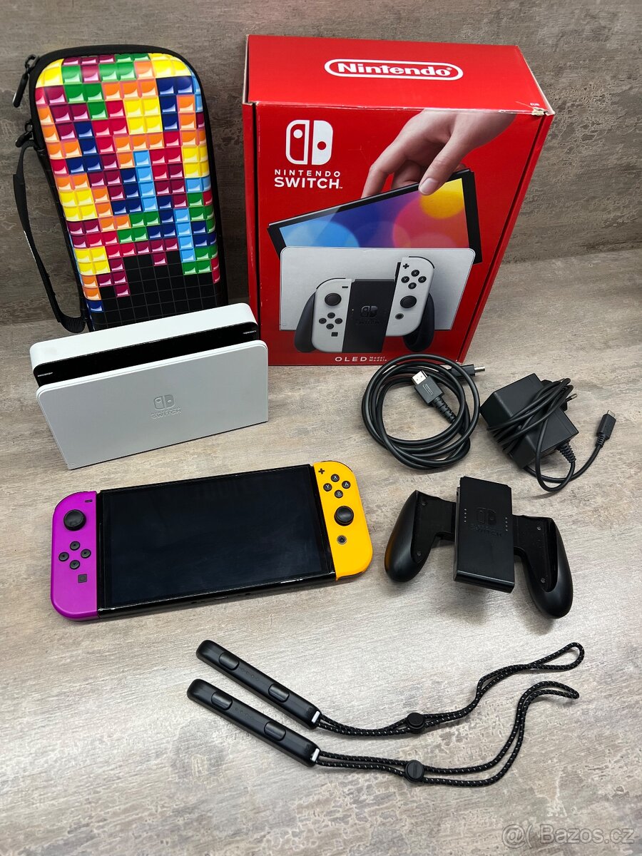Nintendo Switch OLED, 2x JoyCony, Controller, Dock, MicroSD - [9.2. 2026]Prodávám Nintendo Switch OLED ve výborném stavu. Konzole je ve skvělém stavu, žádné závady ani škrábance, žádný drift. Kupovaná byla jako dárek, ale moc se na ní nehrálo.