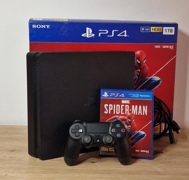 Prodám herní konzoli PlayStation 4 (verze Slim) s velkým 1TB úložištěm. Konzole byla velmi málo používaná, většinu času jen ležela pod televizí, takže je ve výborném stavu a není hlučná.