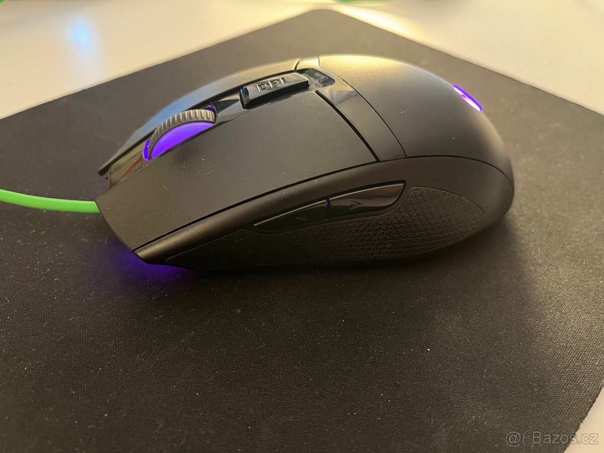Prodám herní myš HP Pavilion Gaming Mouse 300. Myš je čistá a ve velmi dobrém stavu. Občas se přihodí, že vypadává pravé tlačítko ( při delším držení se může přerušit ). Děje se velmi sporadicky, možná by stačilo ji vyčistit. Symetrický design je vhodný pro praváky i leváky. Myš je vybavena optickým senzorem s rozlišením až 5000 DPI, které lze snadno přepínat podle potřeby, a nabízí 8 tlačítek, včetně dvou bočních na každé straně. Rozměry jsou 4,2 × 12,5 × 6,9 cm, hmotnost cca 120 g. Podsvícení lze měnit mezi zelenou, fialovou, červenou a bílou barvou. Prodávám jako použité zboží bez záruky.