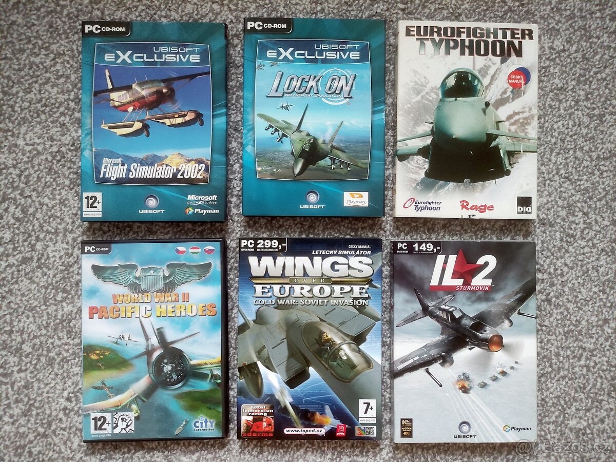 Prodáme starší PC hry simulátory letadel v super stavu - české verze, netknutý obal, CD/DVD nosič pouze jednou v mechanice, vše čitelné, žádné ani malinké škrábance. Tituly: Flight Simulator 2002, Lock on, Eurofighter Typhoon, World War 2 Pacific heroes, Wings over Europe, IL 2 Sturmovik. Požadavky na PC: Procesor Pentium 2 až Pentium 4, Windows 98/XP/2000, 64 až 256 MB RAM, DX 9.0c a vyšší, zvuková karta. Cena za kus 99 Kč, za celý komplet 500 Kč. Nejlépe osobně v Plzni. Možnost zaslání kvalitně zabaleno Zásilkovna 89 Kč, Balíkovna 75 Kč, Česká pošta 89 Kč na poštu, 109 Kč na adresu. Pište na Whatsapp 797625464 nebo odpověď do formuláře.