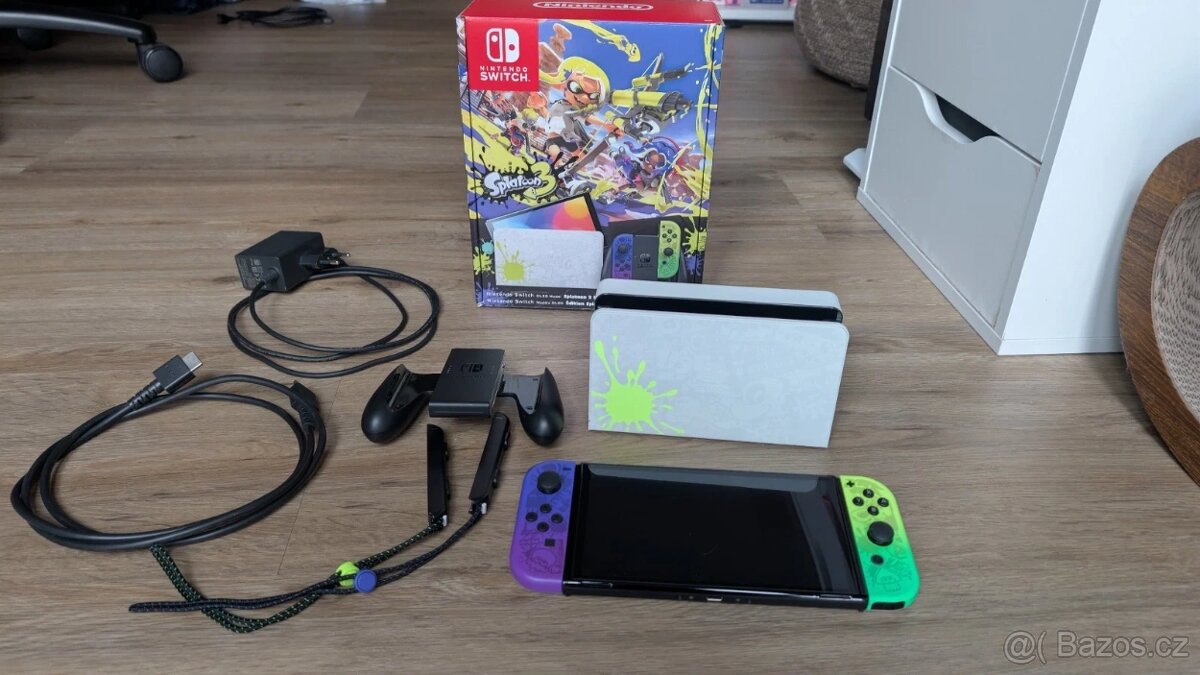 Prodám Nintendo Switch OLED – Splatoon 3 edice v atraktivním barevném provedení inspirovaném touto populární hrou. Konzole je ve velmi pěkném stavu, plně funkční a připravená k okamžitému hraní.