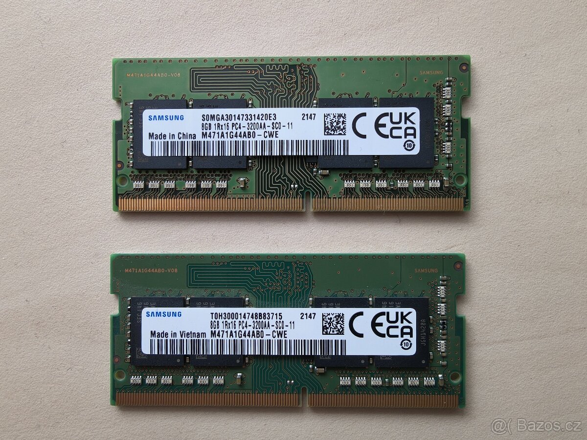Prodám sadu 2×8 GB (16 GB) DDR4 SO-DIMM operační paměti Samsung, frekvence 3200 MHz.