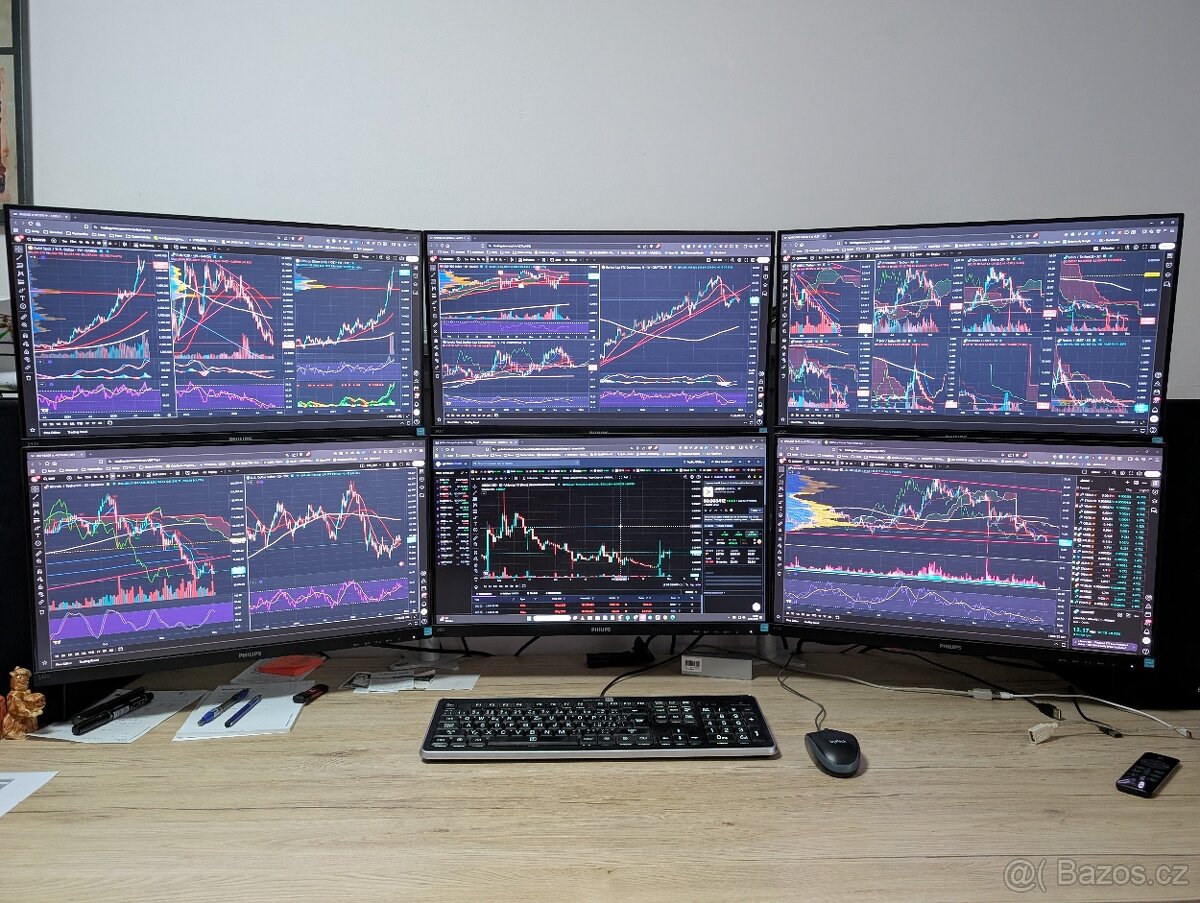 6 monitorů Philips 24" s profi držákem (pc 8tis.) ...možno přidělat k jakékoli desce stolu. Případně prodám i samotný držák.