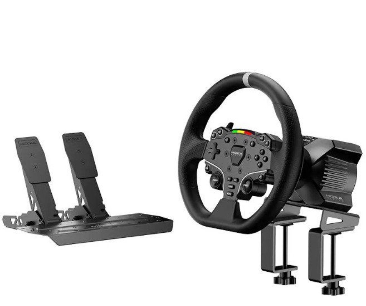 Zdravím, prodám sim-racing sestavu Moza Racing. Jedná se o Direct Drive základnu, takže Force Feedback je silný, detailní a tichý - úplně jiný level než běžné volanty na ozubená kola.