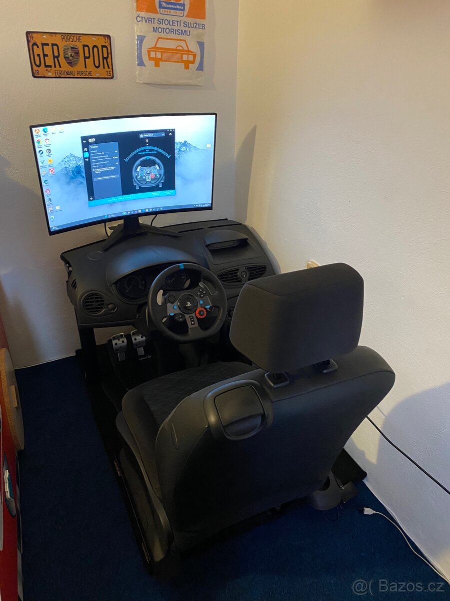 Dobrý den prodávám herní simulátor je vytvořen z clio 3 palubní desky sedačky a středové konzole.Další komponenty jsou logitech g29 volant + řidička a ruční brzda. Vše funguje velice dobře jediné co ne jsou budíky nemam je zapojené k pc.Konstrukce je vyrobena ze dřeva a obalena do koberce ale je dost pevná. Sedačka je pohyblivá. Prodám jako celek