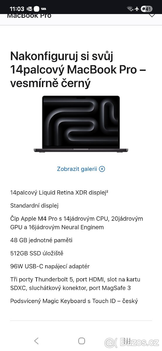 Prodám MacBook Pro M4 pro 48gb Ram 512 bg Ssd
