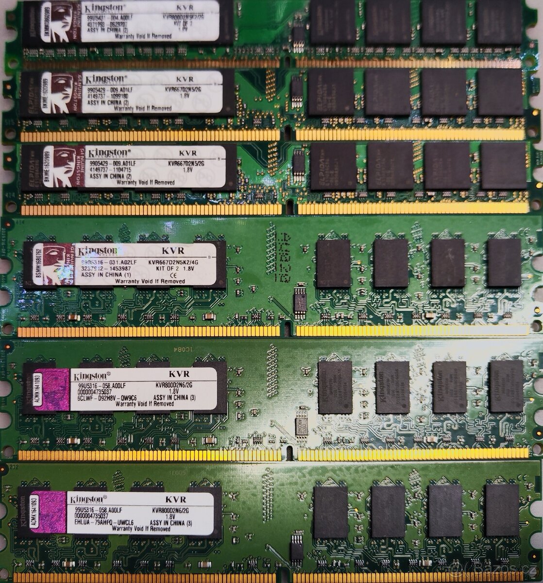 Kingston 6x2GB DDR2 12GB. Odzkoušené. Možnost i jednotlivě. Cena za vše 800kč.