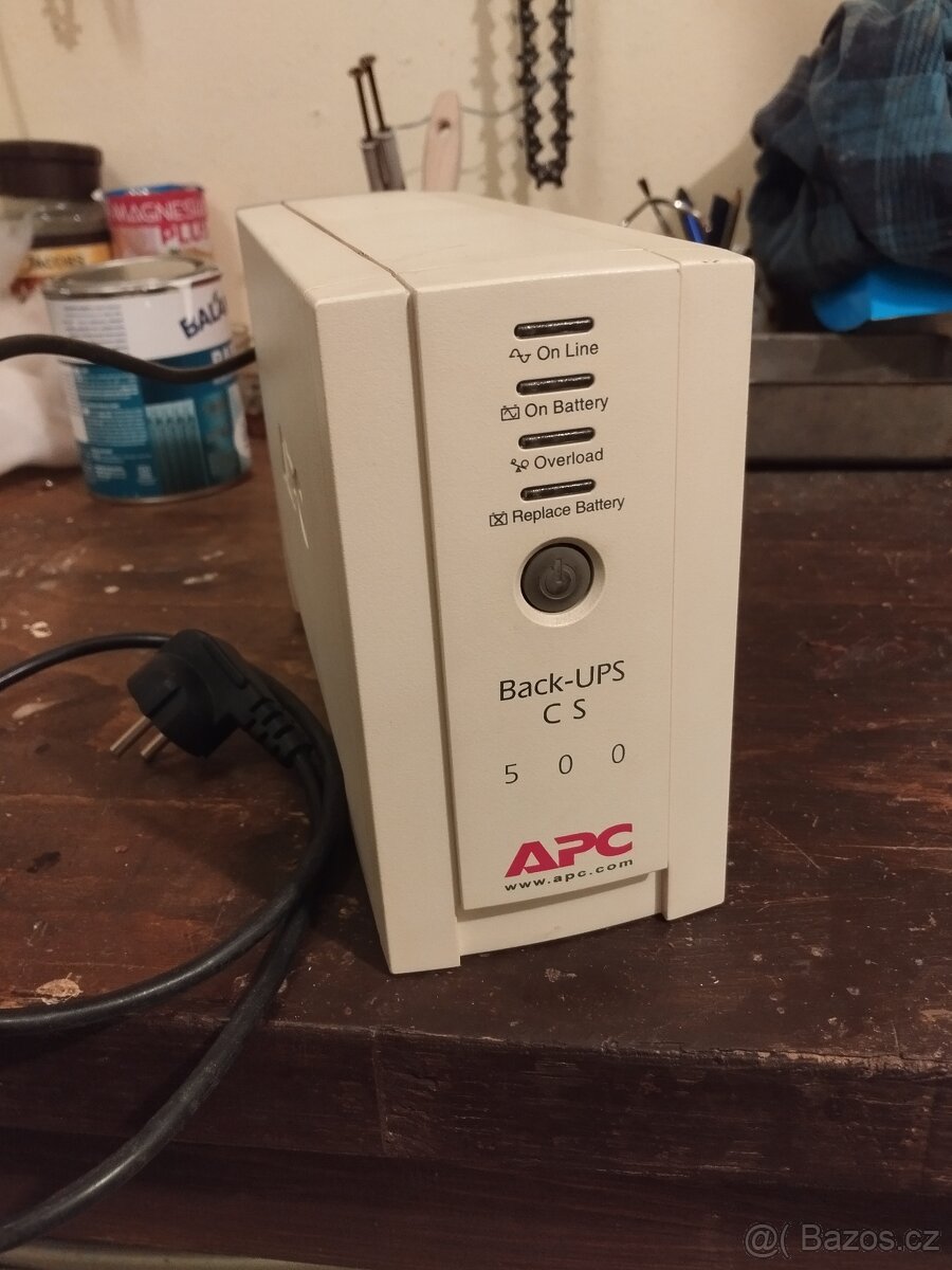 APC Back-UPS 500 CS - [19.2. 2026]Nabízím záložní zdroj UPS APC Back-UPS CS 500 BK500EI - Model 500VA, výstup 220-240V AC 50/60Hz 2,3A 300W. 3 zálohované výstupy, 1 chráněný proti přepětí. UPS je funkční, při zátěži žárovkou 60W vydrží přibližně 50 minut, nová baterie v roce 2024.
