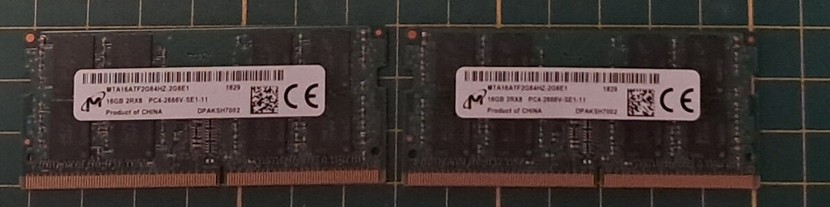 Prodám použité 2ks pamětí Micron 4GB DDR4 SODIMM 1Rx16 PC4-3200AA-SC0-11 MTA4ATF51264HZ-3G2J1 - určené pro notebook/mini PC, vyndané z funkčního PC za účelem rozšíření.
