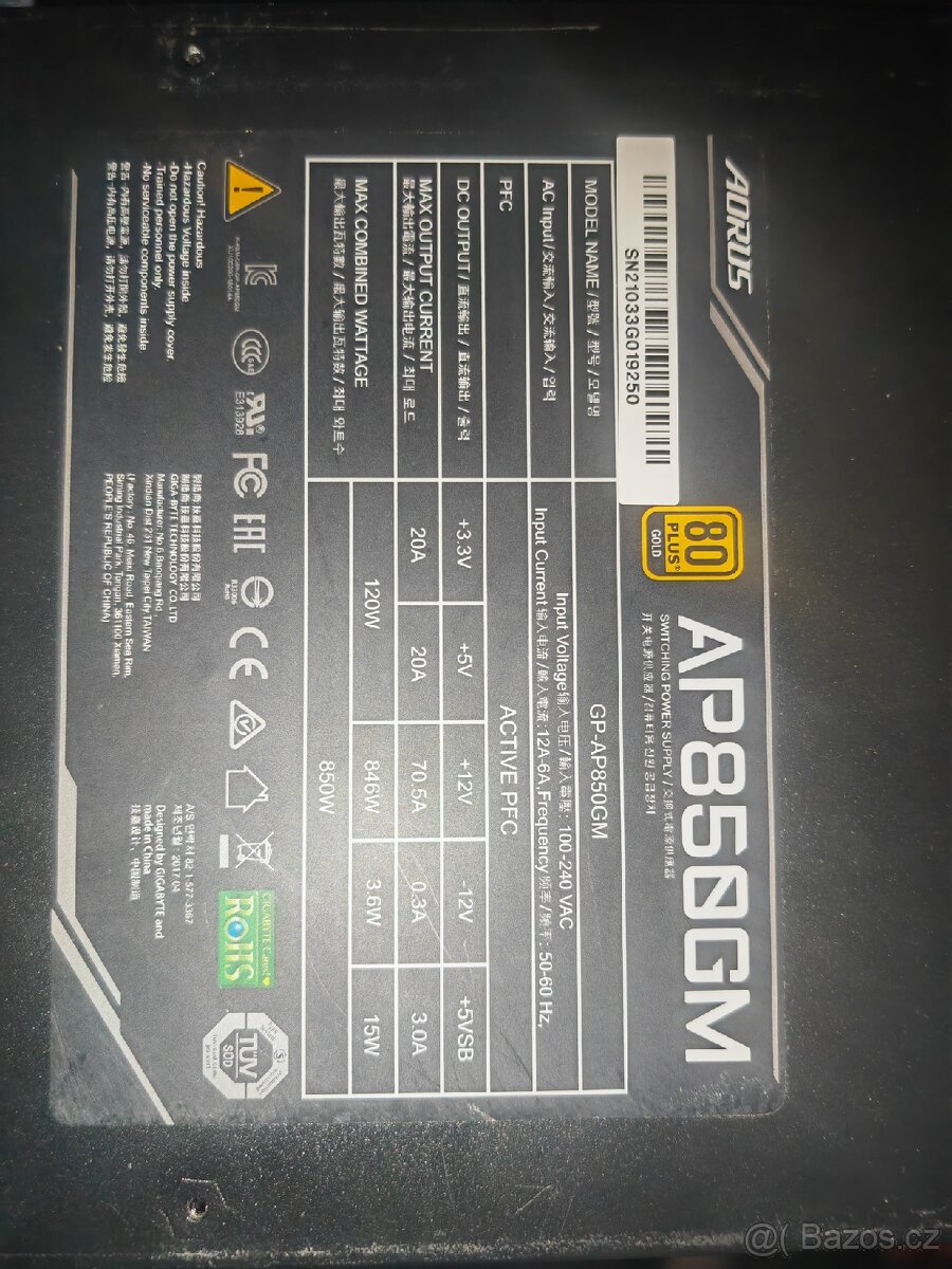 Prodám napájecí zdroj Gigabyte AORUS ap850gm 850W.