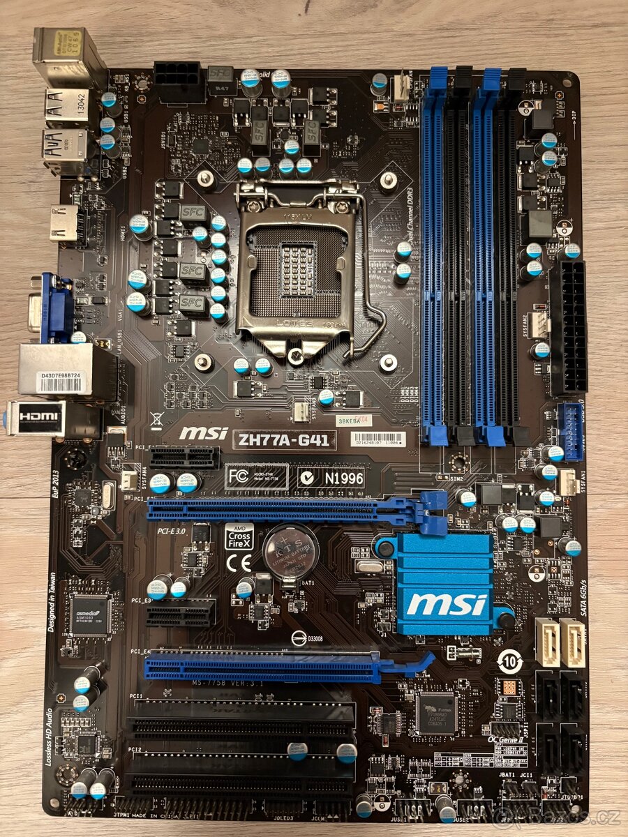 Prodám základní desku MSI ZH77A‑G41, socket LGA1155, vhodná pro procesory Intel Sandy Bridge / Ivy Bridge (i3, i5, i7).