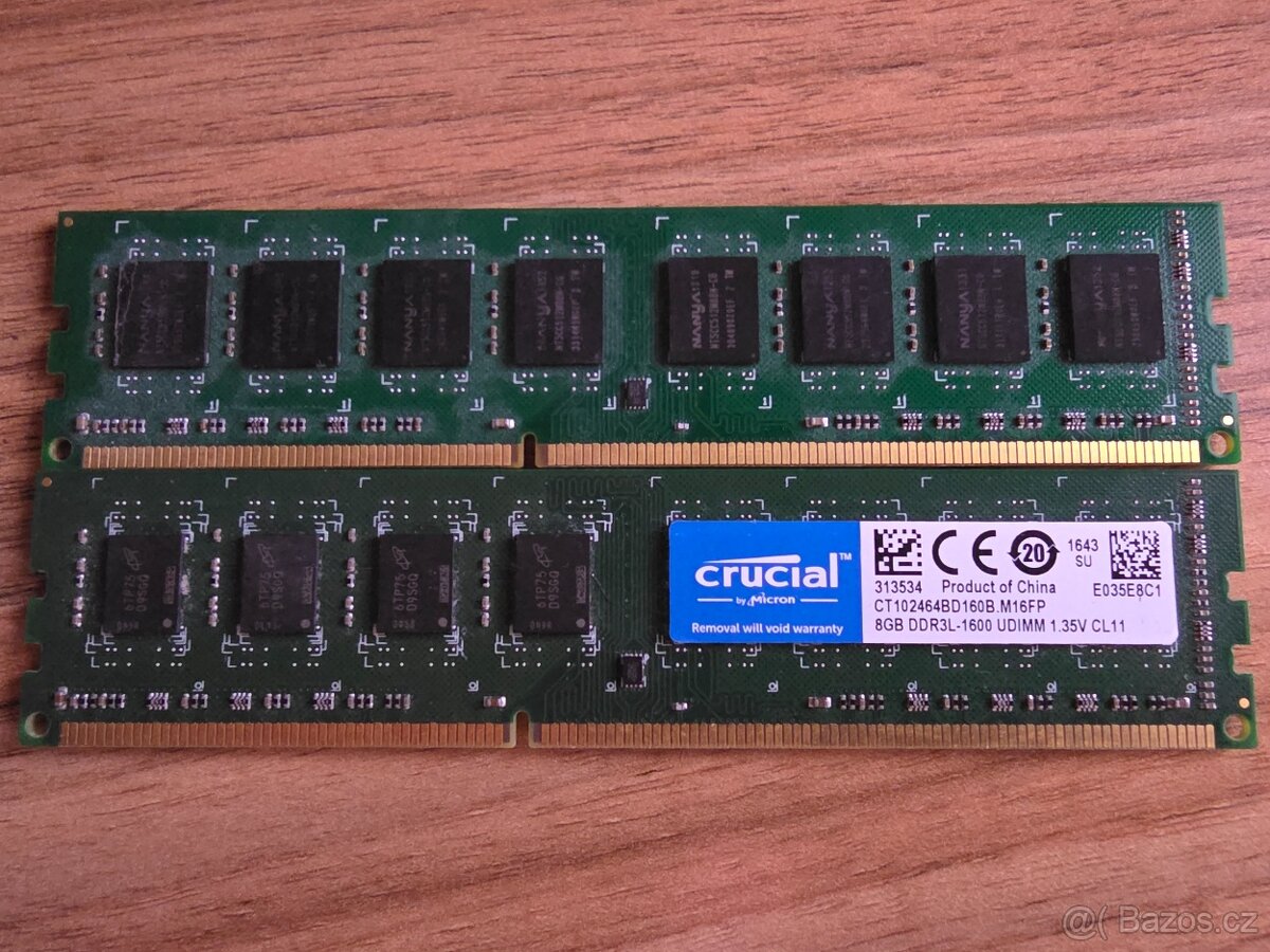 Prodám paměti Crucial by Micron – kit 2×8GB (celkem 16GB). Vhodné do stolního PC.