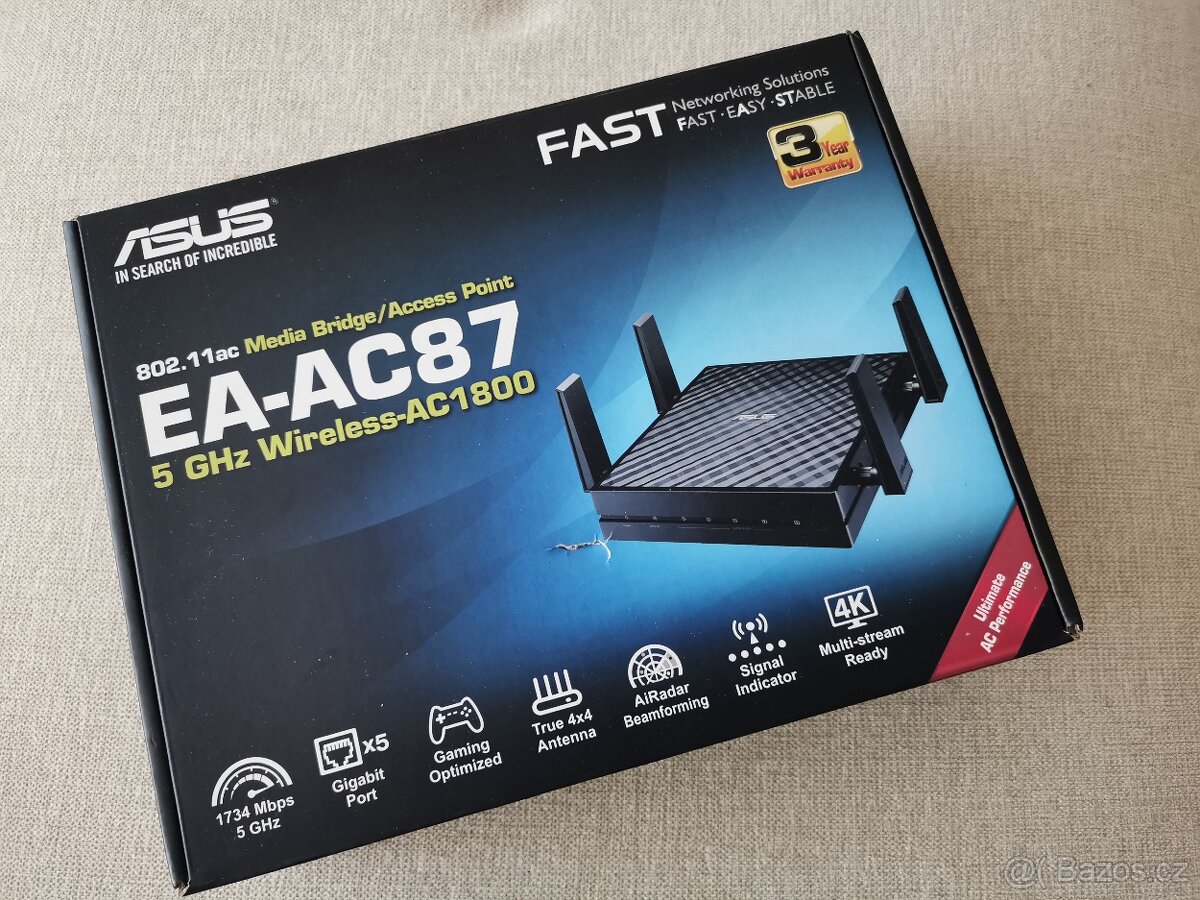 Prodám použitý plně funkční multimediální most a přístupový bod typu Wireless-AC1800 s konfigurací antén 4×4, které nabízí rychlost přenosu dat 1734 Mb/s, jež je vyšší než v případě kabelového připojení, lepší pokrytí signálem prostřednictvím konfigurace antén 4×4 (4 antény pro příjem a 4 antény pro odesílání dat) a technologii MU-MIMO zajišťující vysoký výkon všech připojených zařízení.