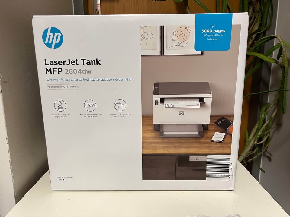 Pořizovací cena byla 7499 Kč (https://www.alza.cz/hp-laserjet-tank-mfp-2604dw-d7487445.htm), prodám i s jedním tonerem navíc celkem za 6500 Kč.