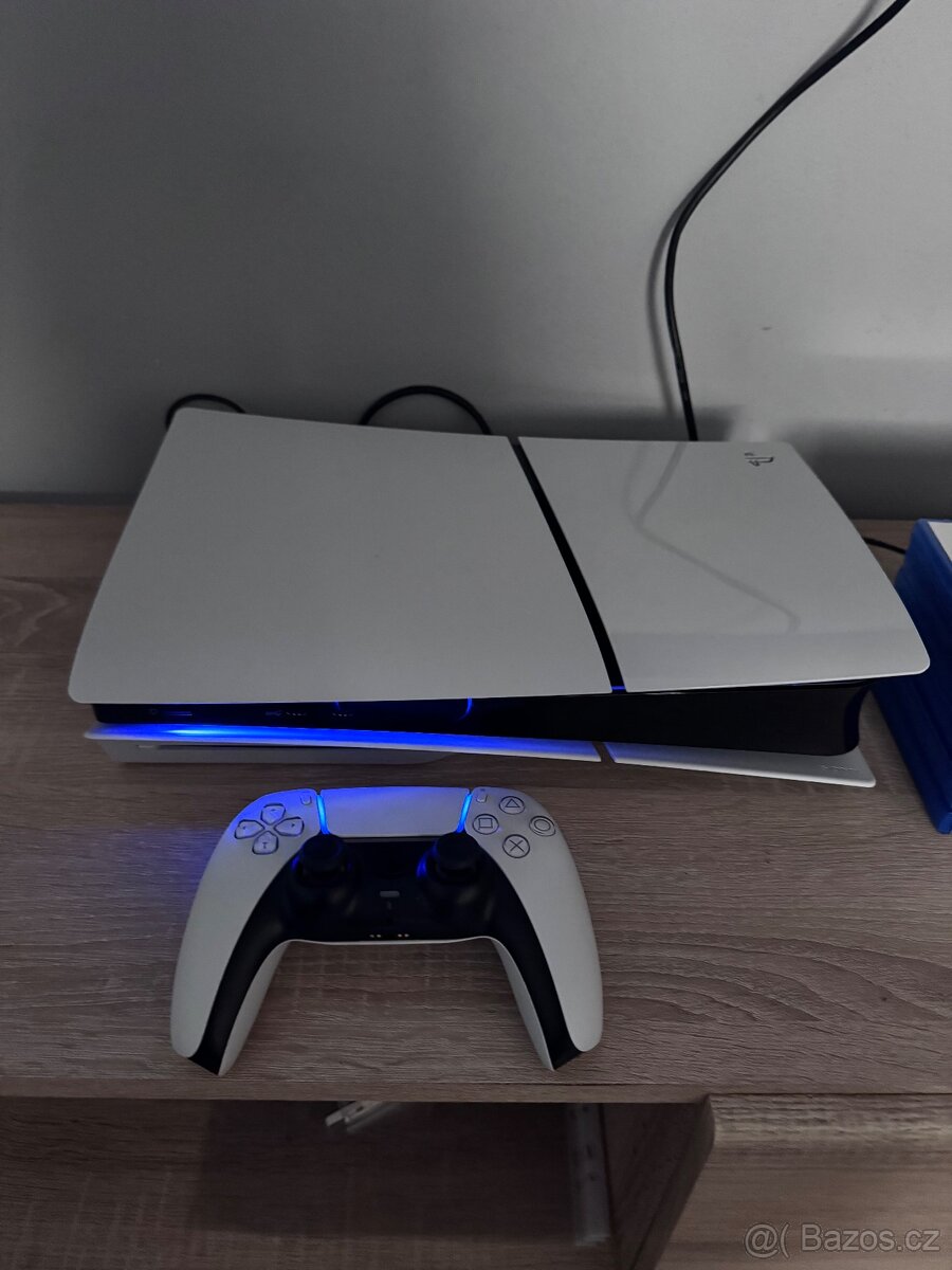 Součástí prodeje je PS 5 Slim s mechanikou včetně 1x originální ovladač Sony Dualsense + všechny kabely a přiko ...