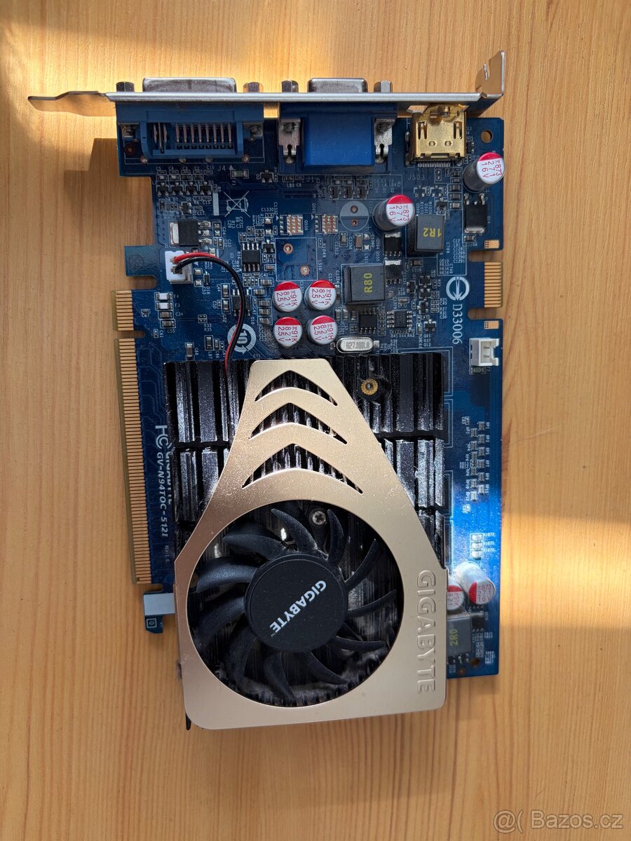 Prodám grafickou kartu Gigabyte GeForce 9400 GT, 512MB. Ideální karta do kancelářského PC nebo na nenáročné starší hry. Výhodou je nízká spotřeba a přítomnost HDMI výstupu pro snadné připojení k monitoru či TV
