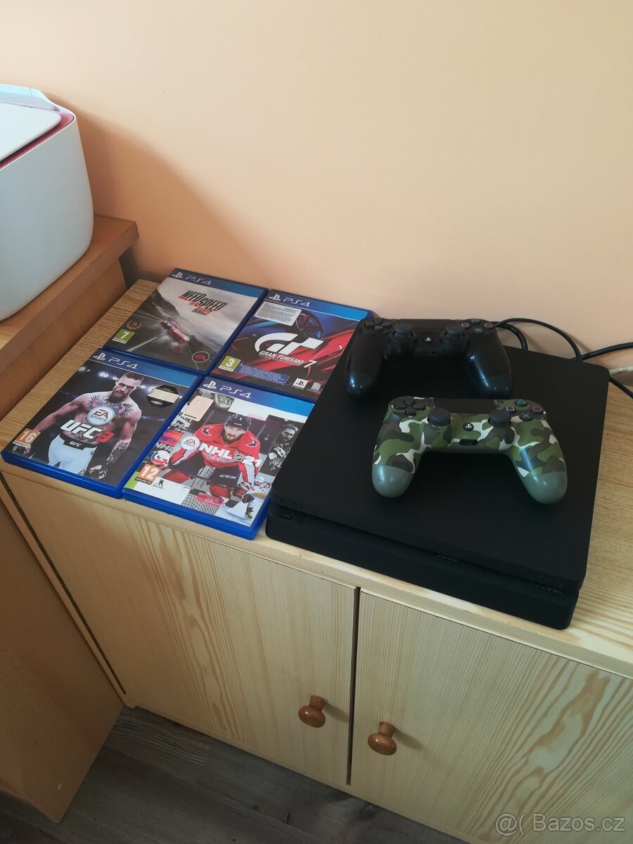 PS4 + 2x ovladač + 9x hra - [28.2. 2026]Prodám Playstation 4 Slim 500GB, 2x ovladač, 9x hra, vč. potřebné kabeláže, vše funkční, bezproblémové.