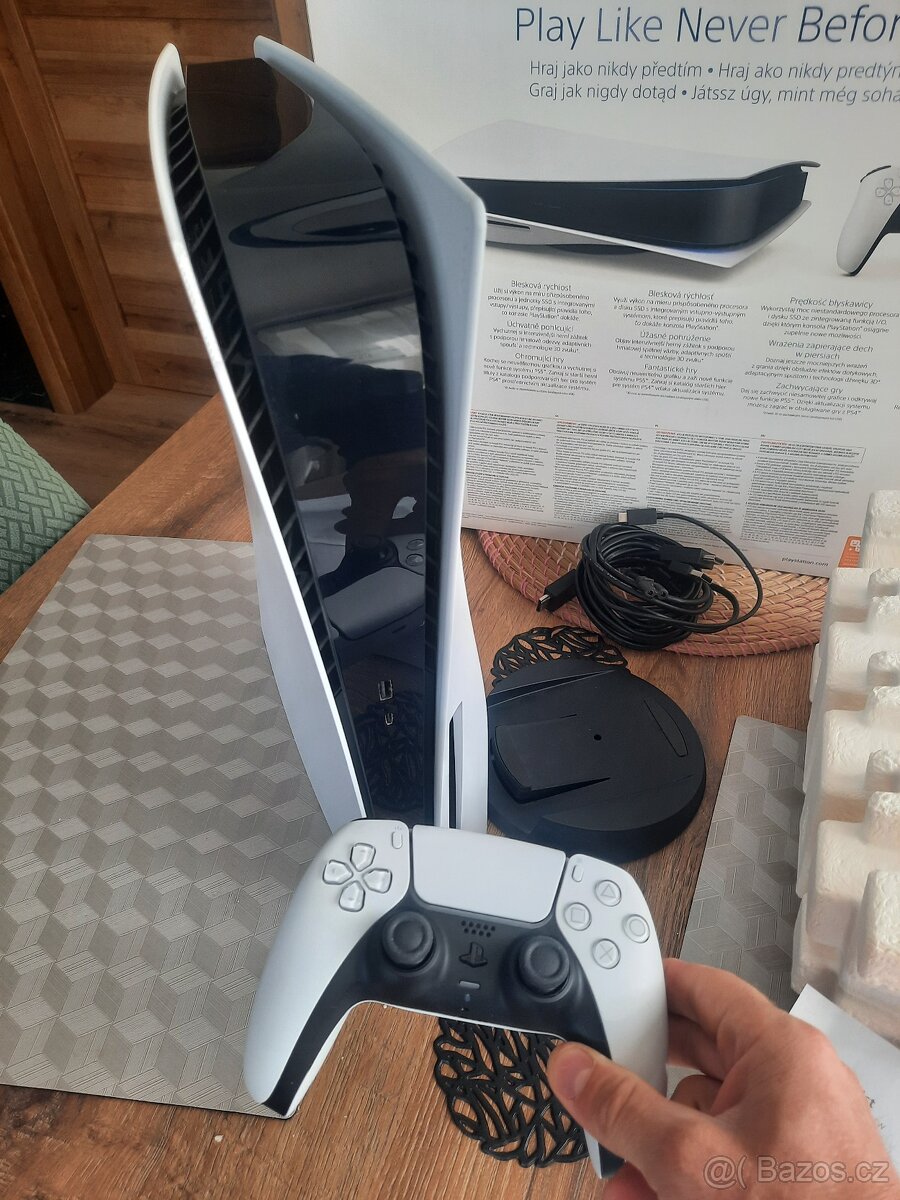 Součástí prodeje je PS 5 Slim s mechanikou včetně 1x originální ovladač Sony Dualsense + všechny kabely a přiko ...