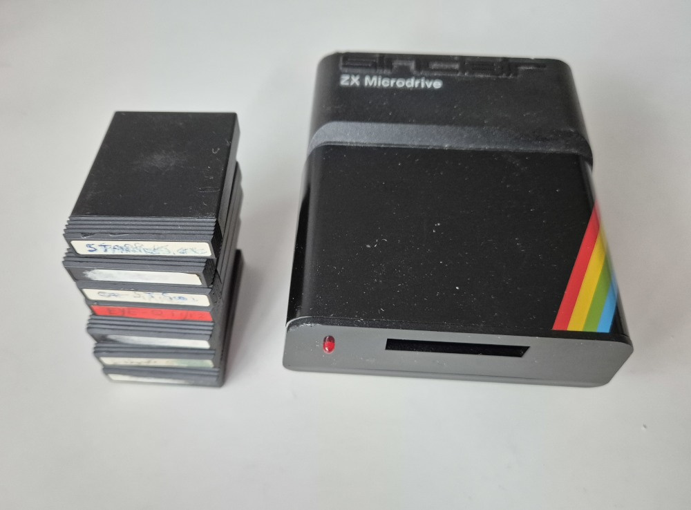 Sinclair ZX Spectrum Microdrive + 7 kazetek. Nemam interface a kabely, abych otestoval, takže bez záruky na funkčnost. Předání Praha 9 metro Střížkov nebo Mnichovo Hradiště nebo Zásilkovna.