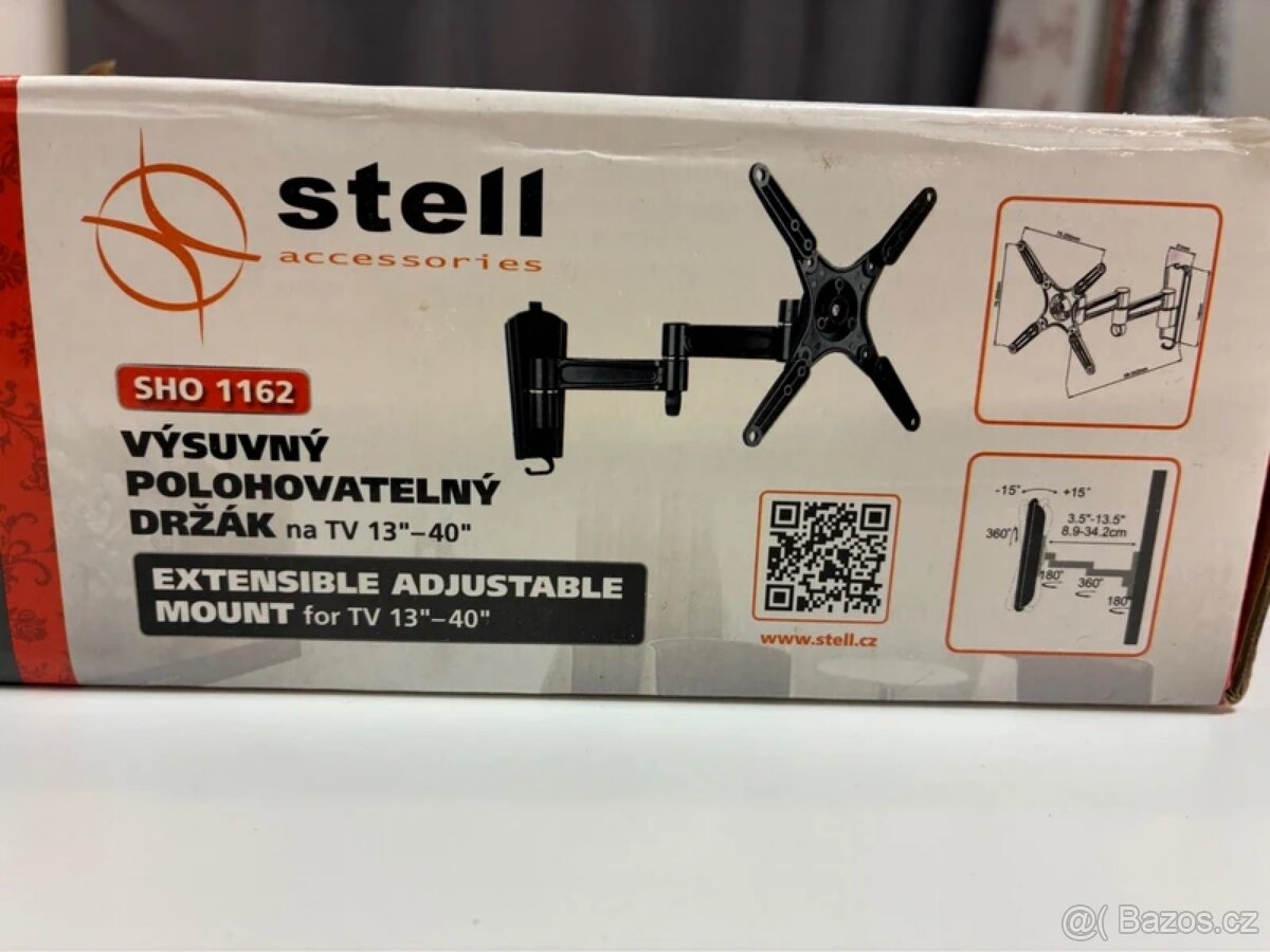 Nástěnný držák monitoru či tv do 20kg STELL SHO 1162. VESA 75 - 200. Montážní vodováha, 3klouby, různé šrouby k montáži, některé možná ani nejsou k tomu.