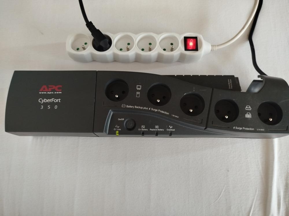 Prodám záložní zdroj APC CyberFort 350, plně funkční, použitý. Zdroj je zatížitelný 1.6 A a 3.7 A. Zdroj prodávám bez baterie. Novou baterii mohu dodat za příplatek 500 Kč, parametry jsou 12 V a 5 Ah.