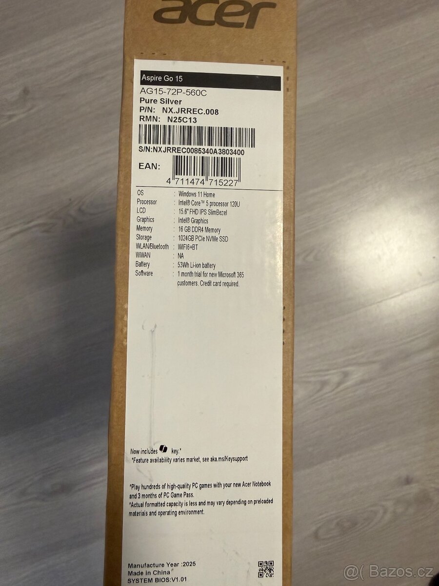 Prodám nový, nerozbalený notebook. Výhra na plese.