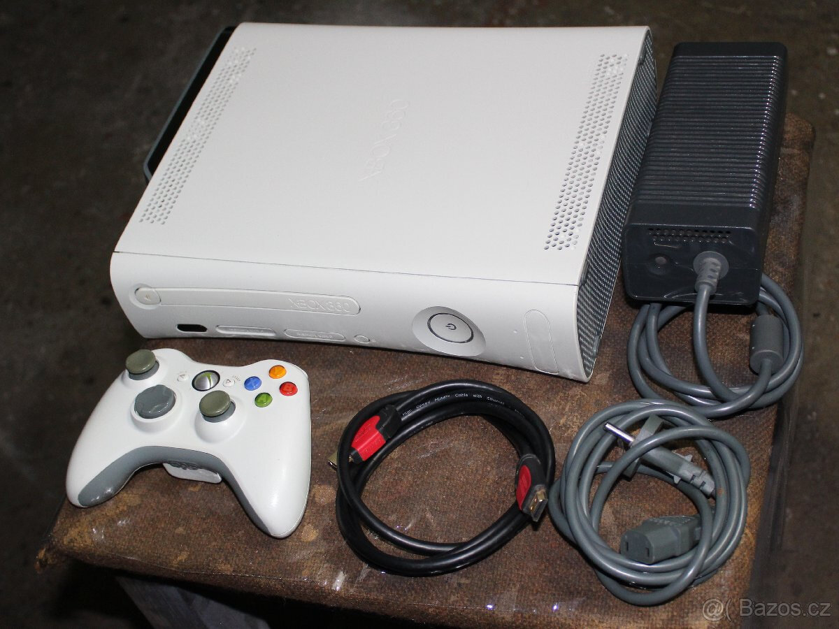 Xbox Slim 360E - [12.4. 2026]Nabízím k prodeji herní konzoli Xbox 360 E. V konzoli je je HDD 250 GB. Je zde 2x originální ovladač Microsoft + nabíjecí články s nabíječkou. K tomu 6x hra, všechny lze spustit a hrát. Vše plně funkční v pěkném stavu.