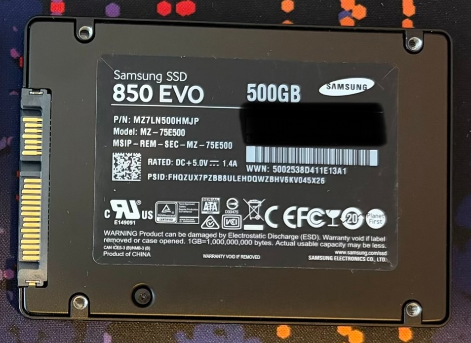 SSD disk Samsung 850 EVO 2.5" - 500GB SSD - [27.4. 2026]Značka Samsung. Pouze 6666 hodin v chodu. Použitý ale plně funkční. Dám záruku na vyzkoušení 1 měsíc. Osobní odběr možný v Praze. Volejte klidně i o víkendu. Zasílám Zásilkovnou nebo PPL. Aktuální do smazání.