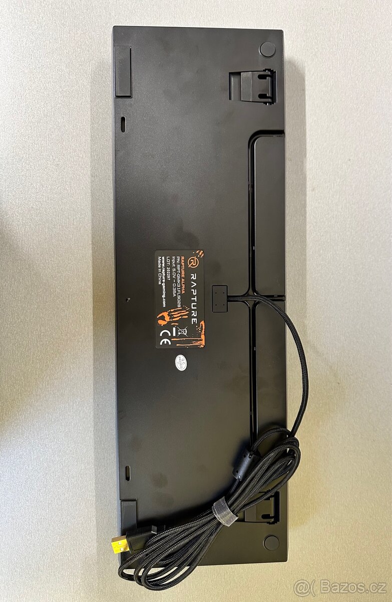 Mechanická klávesnice pro hráče. Spínače Cherry MX Red, RGB podsvícení. Životnost 50 milionů kliknutí. Opletený kabel, kovová kontrukce, působí bytelně a neklouže. Již nevyužívám, málo jetá. Software pro nastavení kláves a podsvícení je možné stáhnout na Alze.