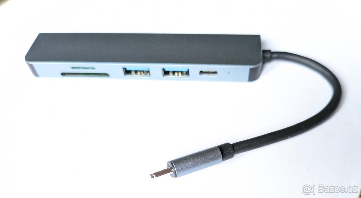Prodám nový USB-C adaptér 6 in 1. Poskytne notebookům s USB-C rozhraním chybějící porty, čtečku karet, USB3, HDMI, nabíjení. Platí do smazání.