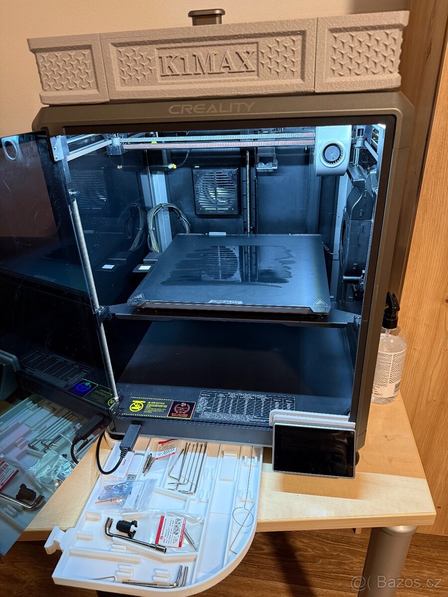 Creality K1 MAX s CFS jednotkou pro vícebarevný tisk. Trysky od Microswiss 0,4 mm + 1 nová a 0,3 mm. Graphite heated bed, nepodléhá kroucení při vyšších teplotách, oproti originálnímu hliníkovému bedu. Originální přidám tomu. 2 tiskové podložky. Natisknuto 1100 hodin. V dobrém udržovaném stavu. Po dohodě můžu přidat aktivní výhřev komory pro tisk technických materiálů. Vzhledem povaze produktu upřednostňuji osobní odběr s možností vyzkoušení.