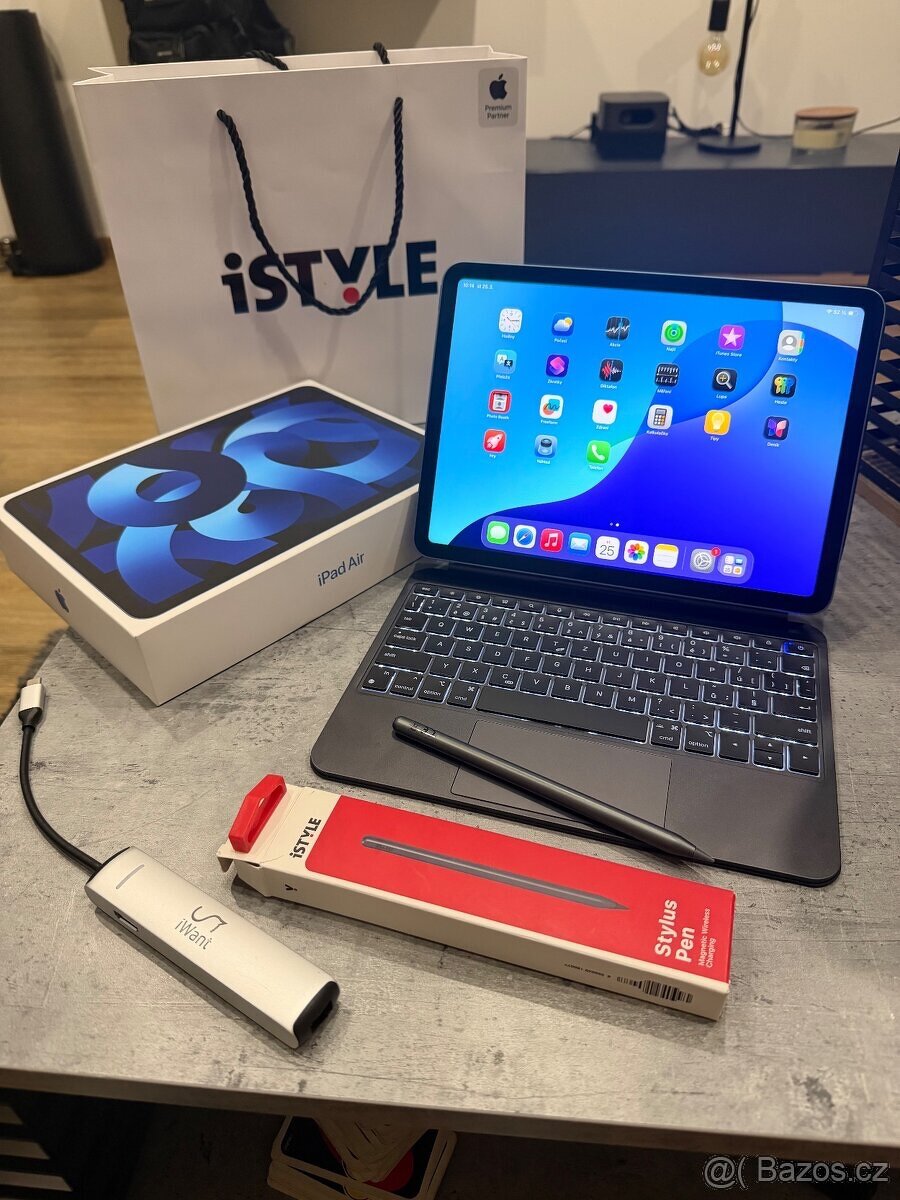 Prodám zachovalý apple iPad Air 5 M1 64gb + přidám epico klávesnici , Stylus epico ,