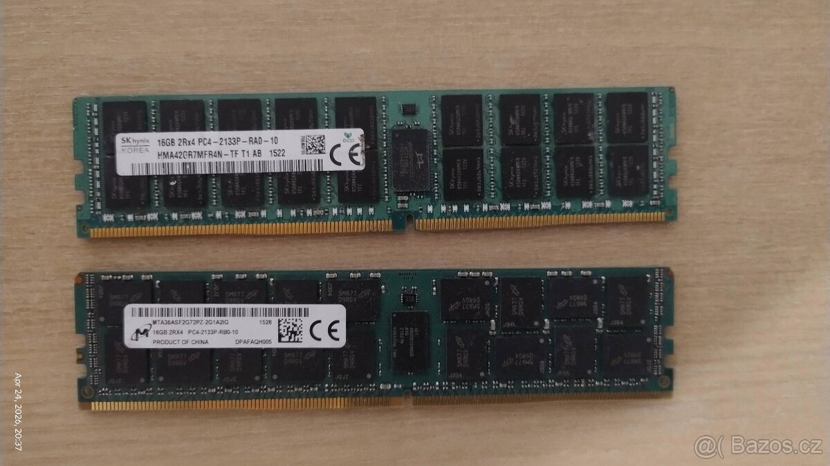 Prodám 2 ks RAM DDR4 RDIMM ECC 16GB 2Rx4 PC4 2133P - RA0 - 10