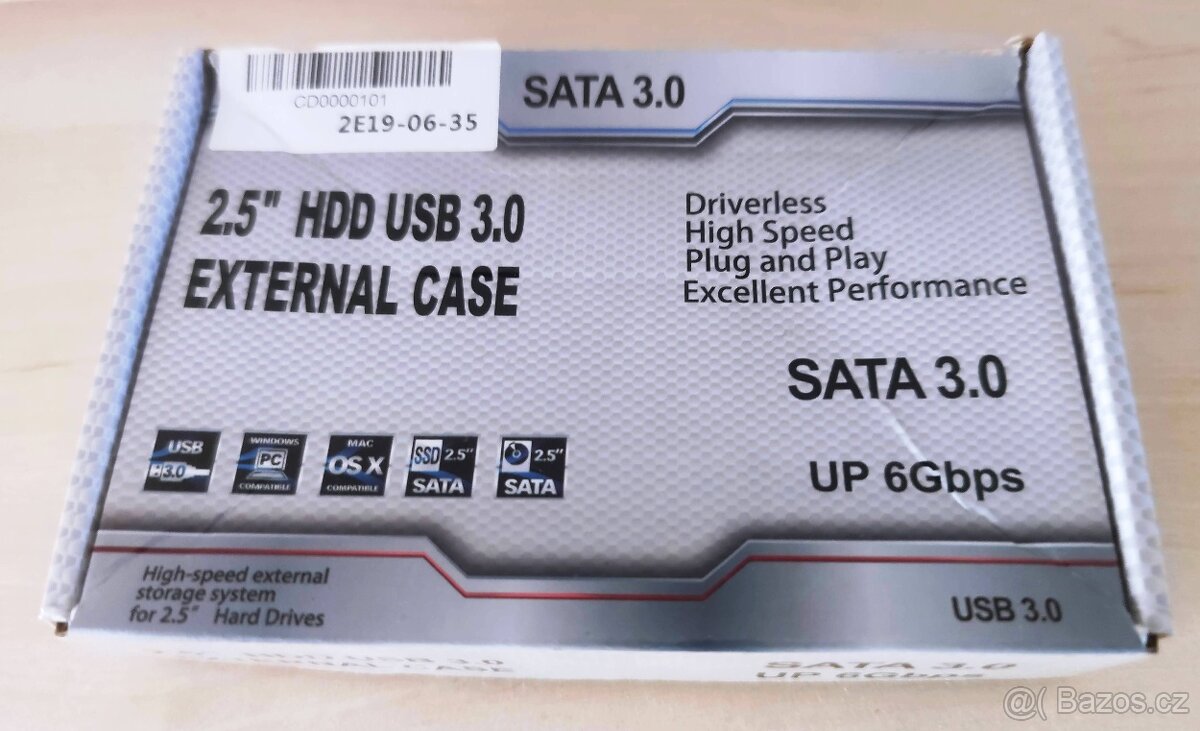 Nepoužitý nový externí obal na hard disk SATA 3.0 . HDD USB 3.0, 2,5", velká rychlost 6Gbps. Zašlu Zásilkovnou na dobírku. K ceně je nutno připočíst poplatek za poštovné a dobírku. Cena poštovného s dobírkou 115,--Kč.