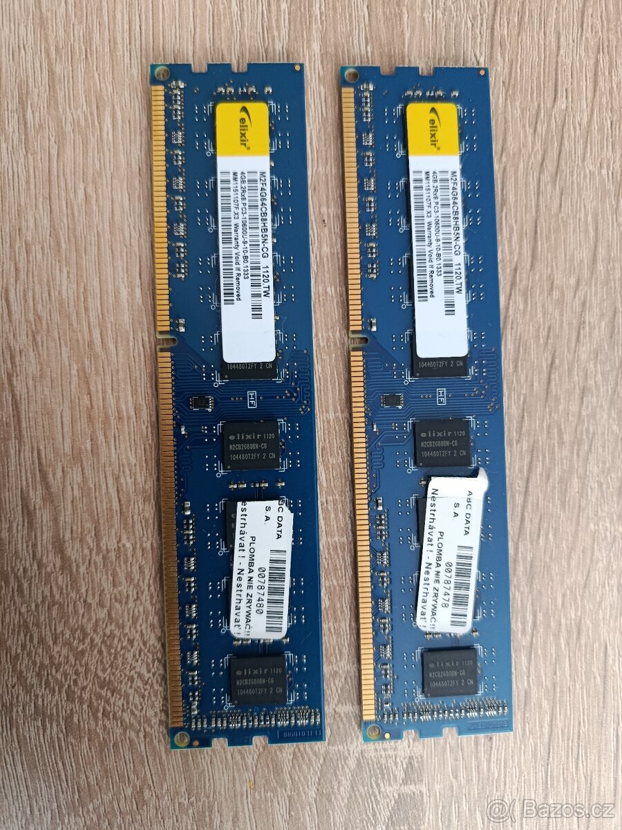 Prodám funkční paměti ram celkem 8 giga ddr3 1333mhz 2 × 4 giga