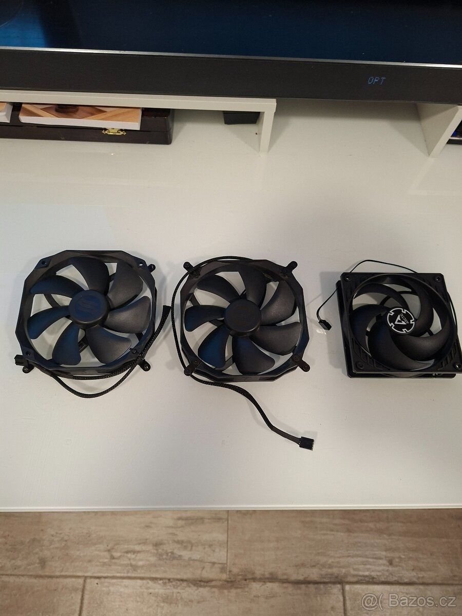 Prodám 3 ventilátory do PC. 1x nový Artic 12cm PWM a 2x použitý Silentium PC 14cm PWM. Prodám pouze vše dohromady za 250,- Kč. Možné osobní předání v Praze či MB nebo pošlu přes zásilkovnu po platbě alespoň poštovného předem.