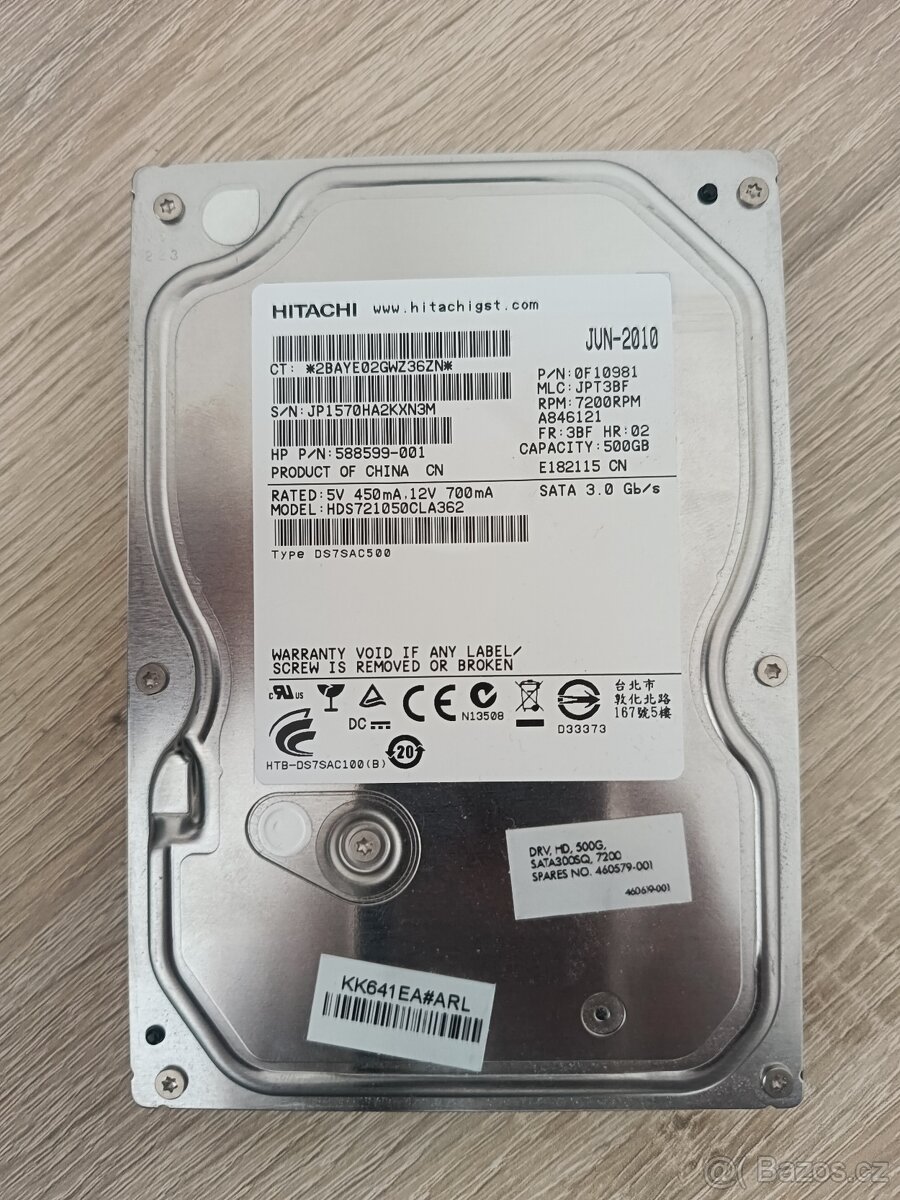 HDD disk 2,5" Hitachi 500GB Z7K500-500 - [28.3. 2026]Prodám 1ks 2,5" Z7K500-500 Cena za kus 300,-Kč. Otestováno před prodejem. Záruka 14 dnů. Ideálně osobní převzetí Brno. Možnost zaslání přes Zásilkovnu (+90,-Kč)
