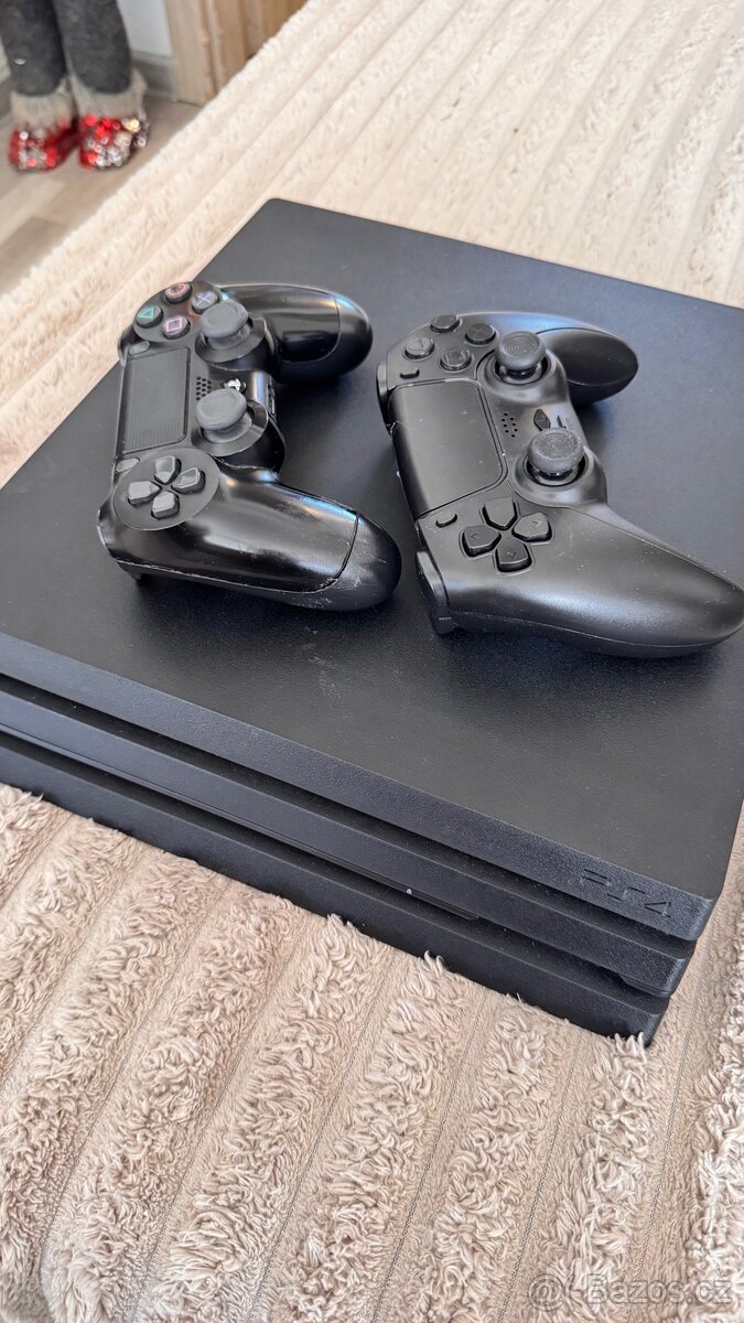 PS4 pro 1tb - [24.4. 2026]Prodám PS4 Pro 1TB se dvěma ovladači. Konzole je plně funkční a dodává se se sadou kabelů (monitor, konzole a nabíjecí kabel). Možnost mírné domluvy.