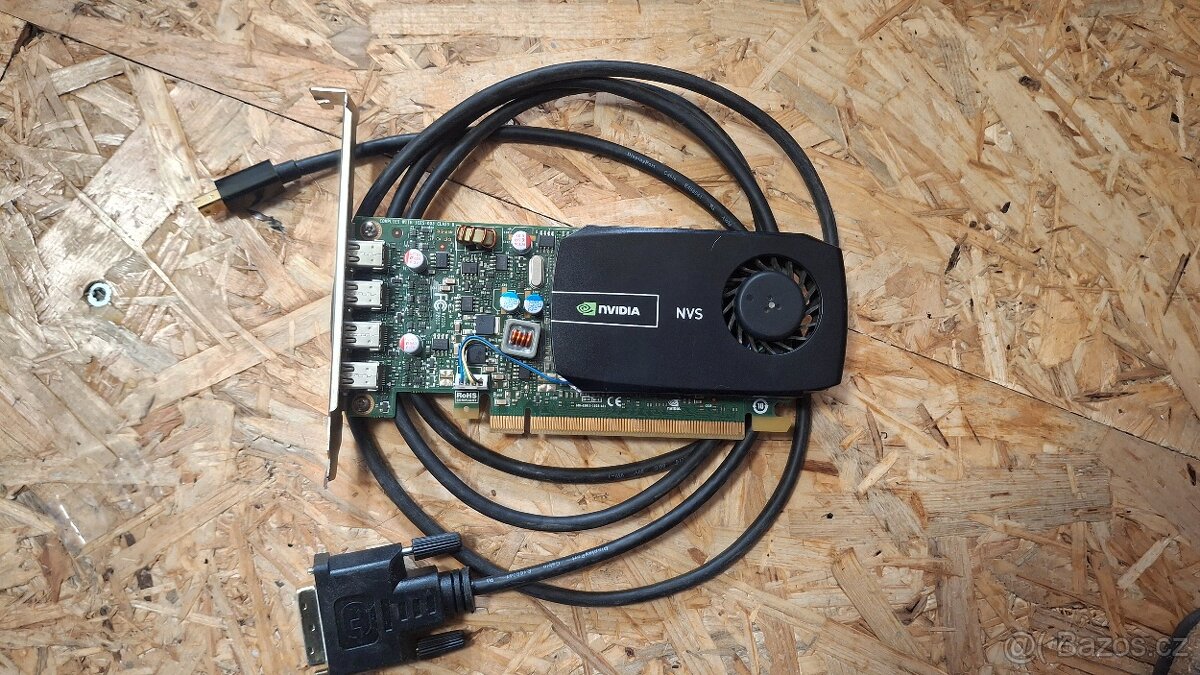 Prodám profesionální grafickou kartu NVIDIA NVS 510 2GB, PCIe, 4× mini DisplayPort, HP OEM, včetně 1× miniDP/DVI kabelu, stav dle foto, vyfoukaná od prachu