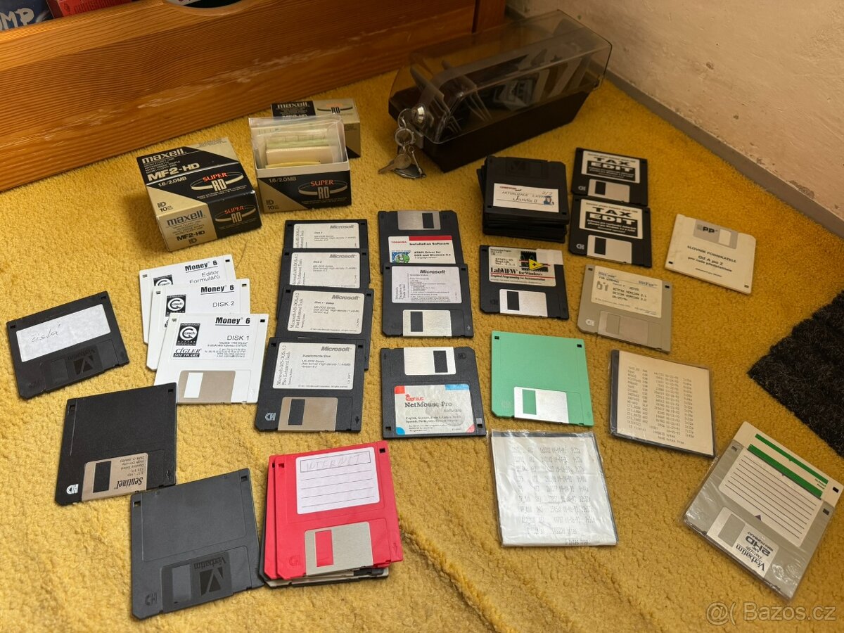 Prodám originální diskety + nějaké prázdné, + nové štítky na diskety Originál instalačky DOS, BITFAX, JURIDIX, a mnoho dalších, celkem 40ks včetně nosiče na diskety se zámkem a klíčem.